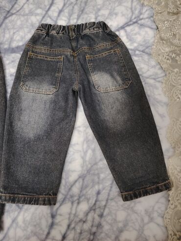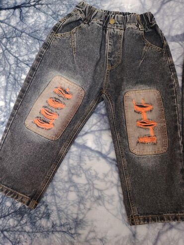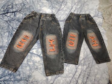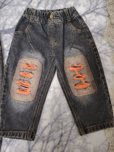 Oğlan üçün qara rəngli baggy jeans şalvar - Model: rahat “baggy” kəsim - Material: denim (uzanan elastik bel) - Rəng: tünd qara, yüngül solğun effekt və dekorativ cırıqlar - Bağlanma: iplə yığma (...