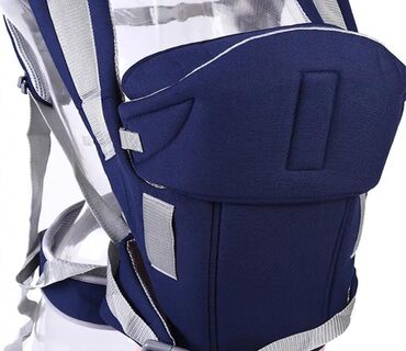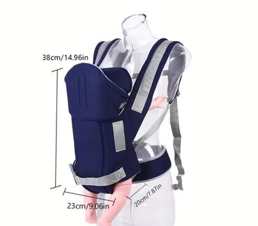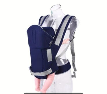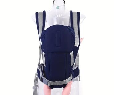 Uşaq daşıma kəfəsi (baby carrier) - Rəng: tünd mavi (korpus) + qara qayışlar - Ön daşıma üçün konstruksiya: körpə ön hissədə oturur, ayaqlar üçün yan çıxışlar var - Yumşaq, yastıqlı içlik və baş-b...