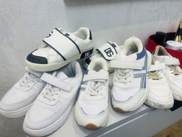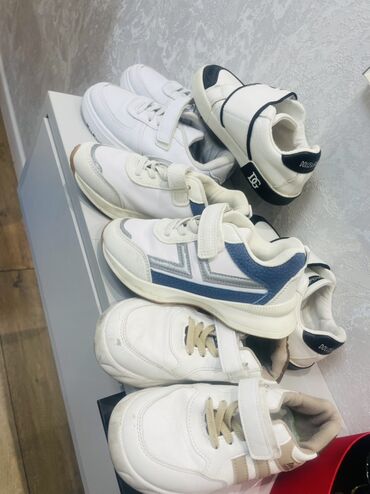 Uşaq ayaqqabıları dəsti(tək tək verilmir ) - Ağ idman ayaqqabısı: ağ üst, üç qara zolaq detalları, yapışqan (skarç) bağlama, yastı rezin altlıq. Ölçü: 31 (altlıqda qeyd olunub). Gündəlik geyim və ...