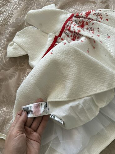 Uşaq donu – krem/ağ rəngdə, “Baby Collection” etiketi ilə. Xüsusiyyətlər: - Model: qız uşaqları üçün bayram/xaçayası/tort kəsimi üçün ziyafət donu - Parça: sıx və formaya saxlayan teksturaya malik...