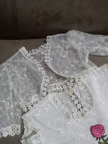 - Bolero: nazik tül üzərində zərif sapla işlənmiş naxışlar; 3/4 qol; kənarları krujeva bəzəkli.