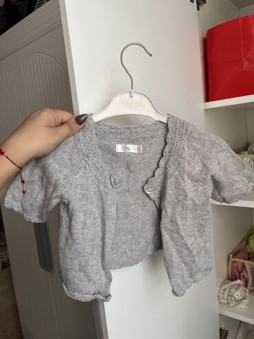- 1 ədəd uyğun bolero/kardiqan: açıq boz trikotaj, qısaqoll, krujeva effekti ilə hörgü haşiyələri, sinədə kiçik dekorativ düymə, yumşaq və elastik toxuma.
