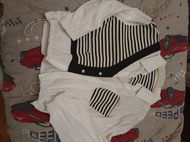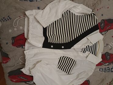 - Ağ köynək: klassik yaxalıq, ön düymələmə; sinə və daxili hissədə qara-ağ zolaqlı trikotaj detal