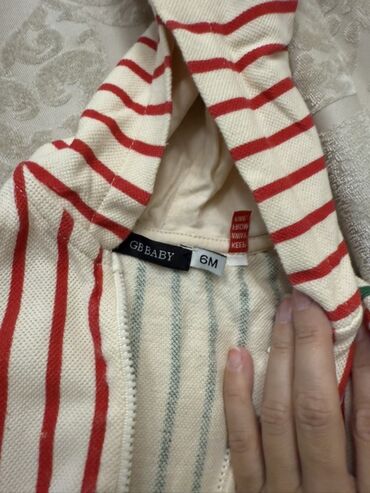 - Kapüşonlu, fermuarlı ceket: krem rəng fon üzərində qırmızı zolaqlar, qolların yanlarında yaşıl zolaq detallar. Sinədə kiçik yamaq. Rahat rezin manjetlər.