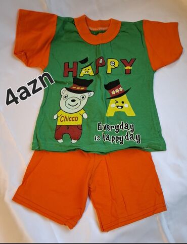 Uşaq geyimləri dəsti – hamısı birlikdə Məzmun: - Qısaqol düyməli köynək: ağ rəngdə, naxışlı (heyvan və məmnun fiqurlar), yumşaq pambıq parça. - Körpə əlcəkləri dəsti: paketdə, bir neçə rəng (ağ və...