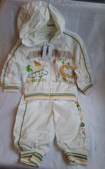 - Üst: kapüşonlu, ön hissəsi fermuarlı; “Safari”, aslan və timsah çapları; yanlarda yaşıl bəzək xətti; qol və bel hissəsində zolaqlı manjetlər