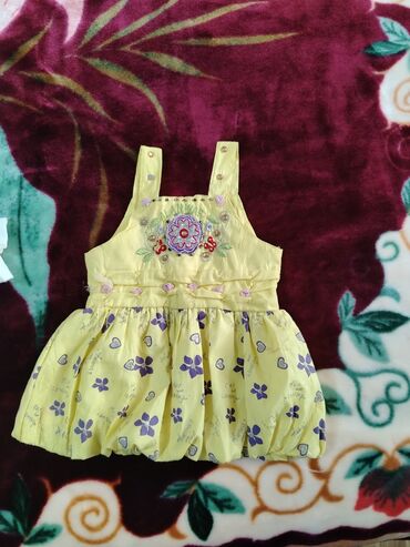 Uşaq geyimləri dəsti – qız üçün. hamisi 1 defe geyinilib. Desti alana elave hediyyem de olacaq Tərkib: - Sarı krujeva detallı paltar - Ağ qısaqol bodi “Make every day MAGICAL” yazılı, ətəyində tül...