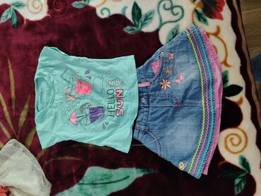 Uşaq geyim dəsti Cox munasib satilir- Şort: LC Waikiki, denim material, 9–10 yaş (etiketdə 134 sm). Öndə böyük oval formalı iki cib, hər iki cibin üstündə dekorativ düyməli kayış detalı. Yanlarda ...