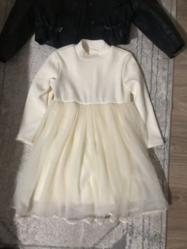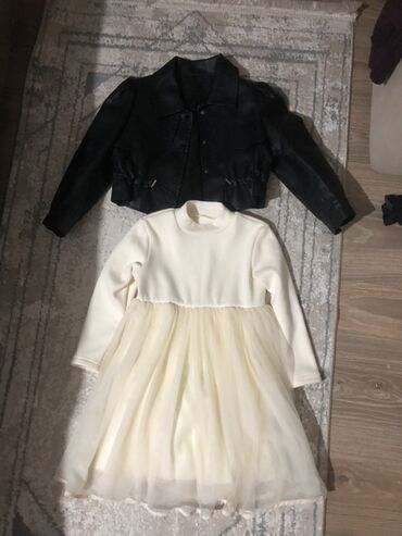 Məhsul: Qız uşaqları üçün dəst – krem rəngli paltar + qara qısa deri gödəkçə