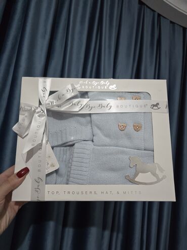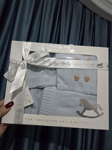 - Dizayn detallar: üst geyimin ön hissəsində balaca ayı fiqurlu düymələr; şalvar və sviterdə elastik manjetlər; uyğun papaq və əlcəklər.