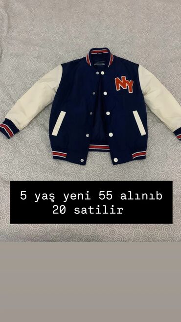- 5 yaş üçün jaket – 20 m: kollec tipli, düyməli, lacivərt gövdə, ağ qollar, “NY” aplikasiyalı, zolaqlı rezin manjet və yaxalıq. Üzərində “yeni 55 alınıb, 20 satılır” mətni qeyd olunub.