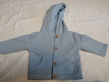 - Açıq mavi qalın kardiqan/jaket: kapüşonlu, önündə 4 ağac düymə, iki yan cib.