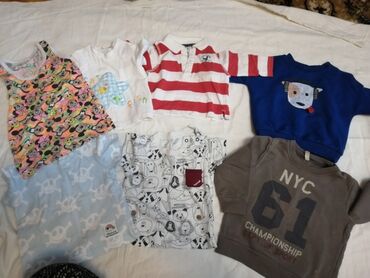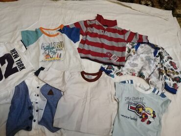 - Bir neçə qısaqol futbolka və köynək: sarı “1952” çaplı, zolaqlı qırmızı-ağ polo tipli, boz-ağ zolaqlı “15” nömrəli, mavi “hello” yazılı, “Malibu Beach” temalı, ağ-qəhvəyi yaxalı sadə ağ, “Venice baby” çaplı, müxtəlif heyvan fiqurlu və naxışlı modellər.
