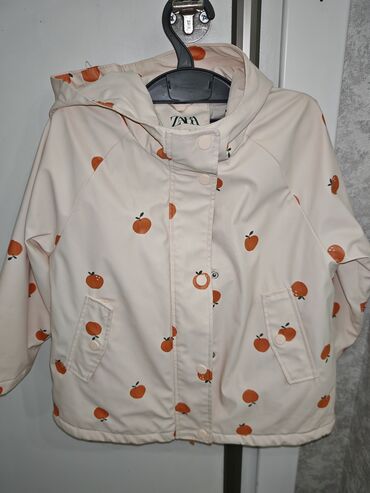 Uşaq üçün kapüşonlu yüngül yağmurluq/kurtka - Rəng: bej, qəhvəyi naxışlı (kiçik kəpənək/qaranlıq fiqur printi) - Brend etiketində: SWP - Material: yüngül, suya davamlı sintetik üst qat; iç tərəfi ...