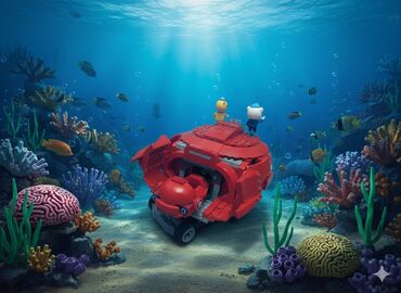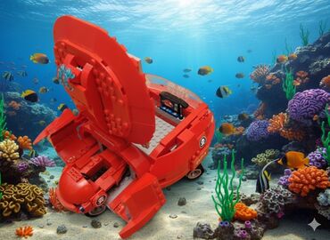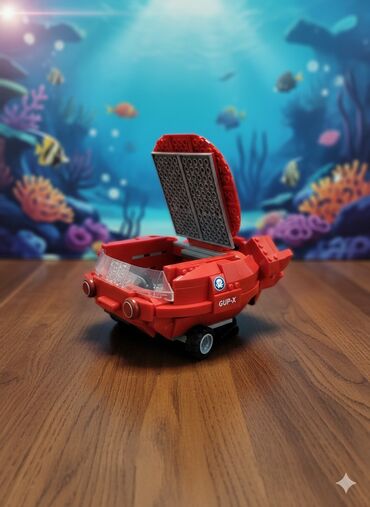 Uşaq konstruktoru – Qırmızı “GUP-X” sualtı nəqliyyat dəsti, istruksiya və iki figur daxildir