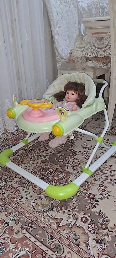 Şəkillərdə göstərilən oyuncaqlı panel və geniş oturacaq sayəsində uşaq həm təhlükəsiz dayaqla hərəkət edir, həm də əylənir.