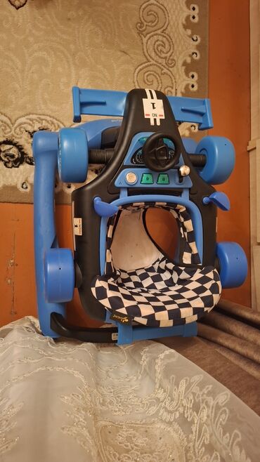 Yarış maşını tematikasına uyğun, körpənin əylənərək hərəkət etməsinə kömək edən funksional gəzdirən.