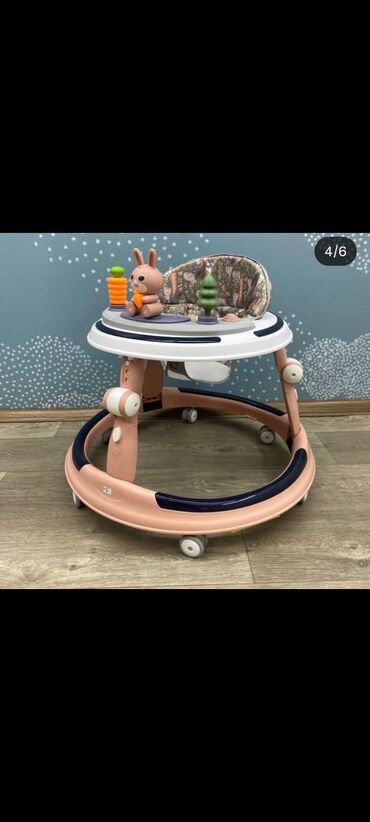 Uşaq gəzdiricisi (walker) – çəhrayı/ağ rəngdə. Xüsusiyyətlər: - Rahat yumşaq oturacaq, sökülüb yuyula bilən parça. - Ön paneldə cizgi şəklində fiqur və işıqlı musiqili modul. - İki ədəd rəngli çiç...