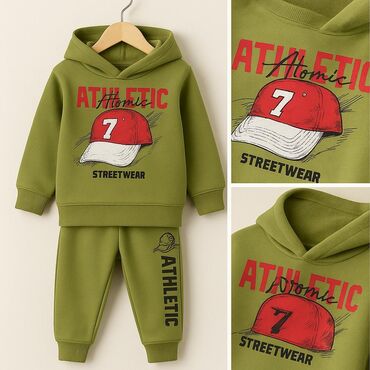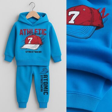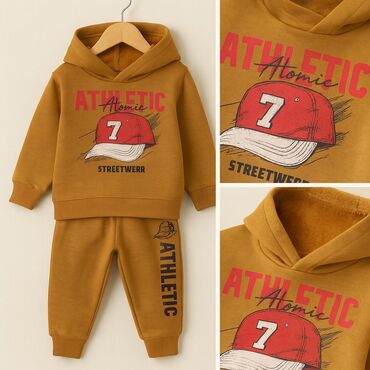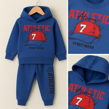 Uşaq üçün iki hissəli idman dəsti – kapüşonlu svitşot və şalvar.