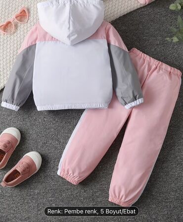 - Dəst: kapüşonlu yüngül küləkkeş gödəkçə + idman şalvarı