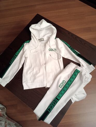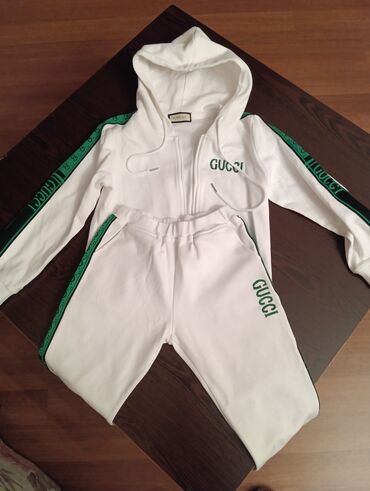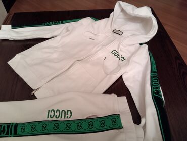 - Şalvar: elastik bel, yan ciblər. Yan tikiş boyunca uyğun yaşıl-zolaqlı bəzək, ön hissədə “GUCCI” yazısı.