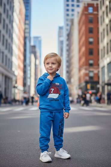 Uşaq üçün kapşonlu sviter/hoodie. - Rəng: xardal-sarı əsas, alt və qol manjetləri boz, qol uclarında qara detal - Ön çap: “TAKE HIKE”, “76”, “GO! HIKE” yazıları və hiking temalı nişanlar - Model: ...