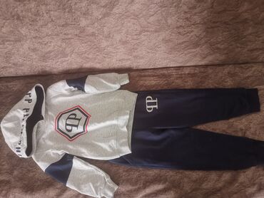 Uşaq idman dəsti – kapüşonlu svitşot və şalvar - Model: 2 hissəli uşaq trikotaj dəsti - Üst: kapüşonlu svitşot, ön tərəfdə kenguru cib, sinədən aşağı enən kontrast ağ zolaq, sinədə kvadrat “1701/1...