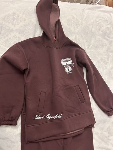 - Üst geyim: kapüşon, ön tərəfdə kenguru tipli iki yan cib; sinədə kiçik qrafik print, ətək hissəsində “Karl Lagerfeld” yazısı