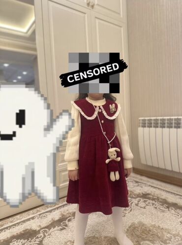 - Tərkib: ağ uzunqol köynək və bordo sarafan (pambıq qarışımlı yumşaq parça hissiyatı), qabağı düyməli.
