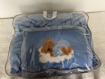 Beşik üçün premium tekstil dəsti - Rənglər: krem və bej tonları, qızılı naxış detalı - Dəst tərkibi (şəkillərə əsasən): - Beşik ətrafını tam örtən yumşaq qoruyucu 8 yastıqlar (kvadrat və düzbuca...
