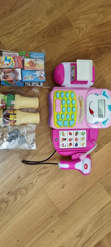 Uşaq üçün “Bear Market” temalı oyuncaq kassası dəsti. Yenidir, səslidir, kalkulator kimi də istifadə edilə biləndir. Qutusu yoxdur. 35 manata alınıb, istifadə edilməyib, endirim olar.