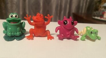- Qurbağa və suda-quruda yaşayanlar: yaşıl gülərüz qurbağa, narıncı və çəhrayı rəngli komik qurbağa fiqurları, açıq-yaşıl balaca firuzə qurbağa.