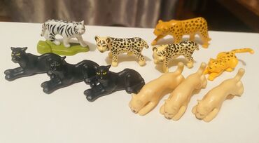 - Yırtıcı pişiklər seriyası: müxtəlif ölçülü plastik fiqurlar – qara panterlər (uzanmış poza), bəyaz zolaqlı pələng dayaq üzərində, leopar/çəngəl-qaplan rənglərində bir neçə fiqur, bej rəngdə pələng şirlər (uzanan poza). Toplam müxtəlif rəng və modeldən ibarət heyvanlar.