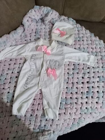 Körpə üçün dəst – ağ rəngdə tulum və papaq