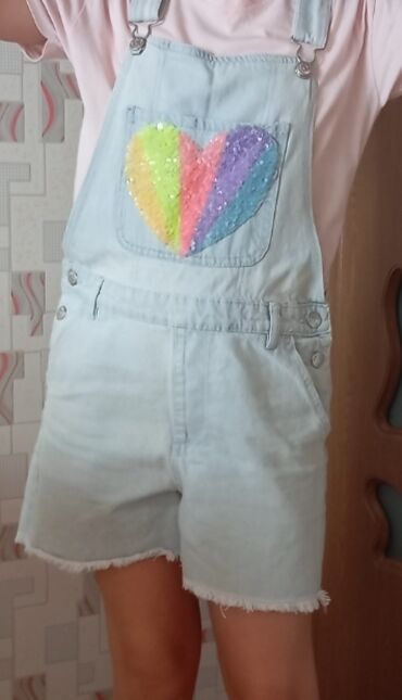 Uşaq üçün cins şort-kombinə çox keyfiyyətli gözəl dondu - Rəng: açıq mavi denim - Model: qısa şortlu kombinezon, ön panel və çiyin qayışları - Qayışlar: arxadan X formada, uzunluğu tənzimlənən dü...