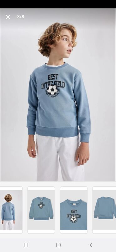 - Göy sweatshirt, “BEST IN THE FIELD” futbol topu printli