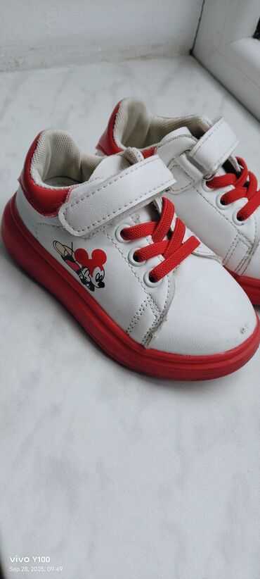 Uşaq üçün Mickey Mouse temalı idman ayaqqabısı. Lc vaykiki. 26 ölçü - Model: yüksək qollu (high-top) uşaq krossovkası - Rəng: ağ gövdə, qara bağcığ və qara burun/gövdə haşiyələri - Dizayn: yan hi...