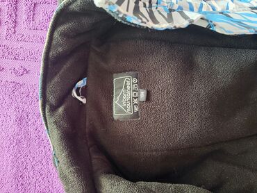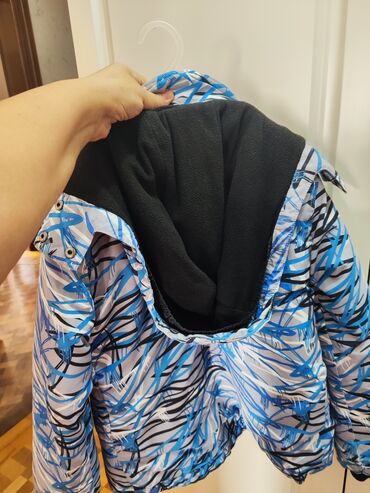 Mavi və boz rənglərdə abstrakt naxışlı, uzunqollu uşaq kurtkası. Kurtkanın içərisi qara rəngli yun astarlıdır. Yüksək yaxalığı və kapüşonu var. Qarşı tərəfində iki ədəd qapaqlı cibləri, ön hissəsində isə fermuar və düymə bağlanma mövcuddur. Qolları rezin manjetlidir. Kurtka "inborn mountaineer" brendidir və 134 ölçüdədir.