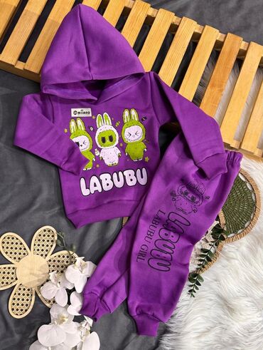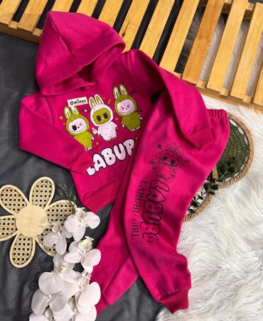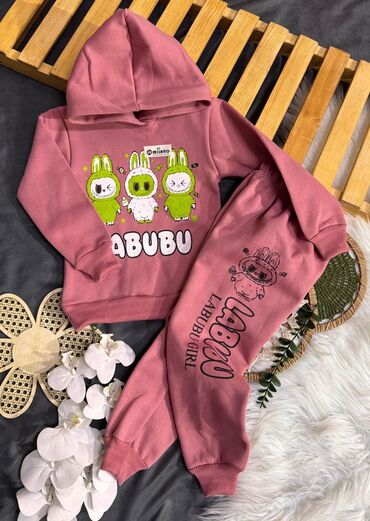 Məhsul: Uşaq üçün sweatshirt və çanta dəsti - Rəng: Açıq çəhrayı - Dizayn: Ön hissədə “Labubu” yazısı və eyni fiqurlu naxış; aşağıda “have a good time” yazısı - Dəst: Eyni printli kiçik çiyin çant...