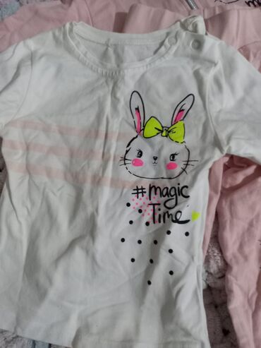 - Ağ uzunqol köynək. Çiyində iki düymə ilə rahat geyinmə imkanı, önündə rəngli dovşan printi və “#magic Time” yazısı.