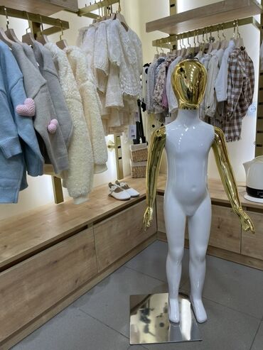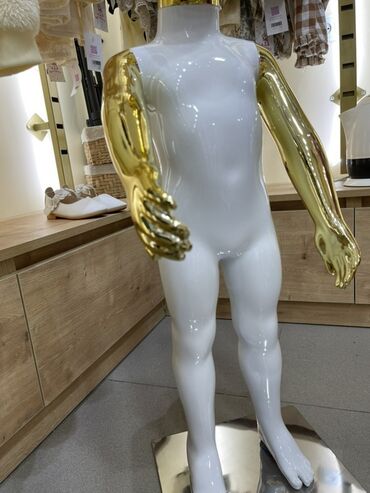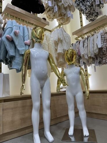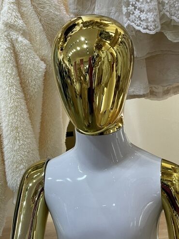 Qızılı xromlu qadın manken – dekorativ və vitrin üçün (olduqca az işlənib) - Material: yüksək keyfiyyətli fiberglas/ABS tipli sərt plastik, güzgü effekti verən qızılı xrom örtük - Bədən forması: q...