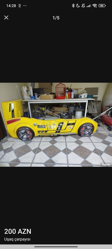 Uşaq çarpayısı – “superkar” dizaynlı, parlaq sarı rəngdə korpus.