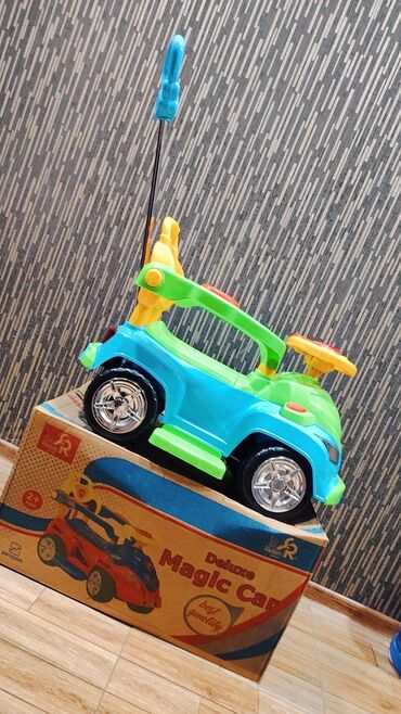 Uşaqlar üçün nəzərdə tutulmuş bu minik avtomobili, uşağınızın gəzintilərini əyləncəli və təhlükəsiz etmək üçün çoxfunksiyalı dizaynı ilə seçilir. Avtomobilin parlaq mavi və yaşıl rəngləri uşaqların diqqətini cəlb edir. Uşaq minik avtomobili itələmə tutacağı sayəsində valideyn nəzarəti ilə hərəkət etdirilə bilər. Həmçinin, uşaq sərbəst hərəkət etmək üçün avtomobilə minib ayaqları ilə irəliləyə bilər. Avtomobilin əyləncəli səs effektləri və işıqları olan sükanı var. Komfortlu oturacaq və ayaq qoymaq üçün platformalar uşağın rahatlığını təmin edir. Bu minik avtomobili uşağınızın motor bacarıqlarının inkişafına kömək edir və onlara əyləncəli vaxt keçirmə imkanı yaradır.