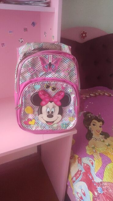 2) Çəhrayı rəng tonlarında Minnie Mouse temalı məktəb çantası