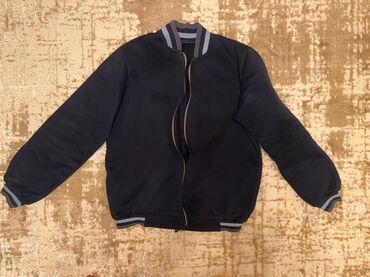 - Tünd göy bomber jaket – fermuarlı, yan ciblər, boğaza və qollara zolaqlı rezinli manjet və ətək hissəsi.