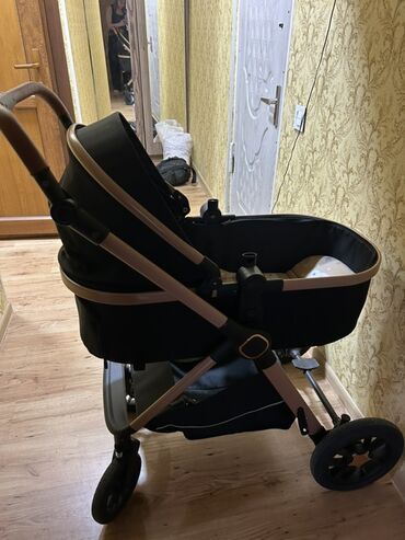 Uşaq arabası və avtomobil kreslosu dəsti Uşaq arabası: - Qızılı-qara şassi, iri təkərlər və dönər ön cüt təkər sistemi - Geniş tənzimlənən günlüyə malik beşik hissəsi, arxası yatırılan oturacaq - ...