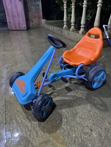 Rənglər: kart – mavi/narıncı; skuter – çəhrayı/narıncı; velosiped – çəhrayı.