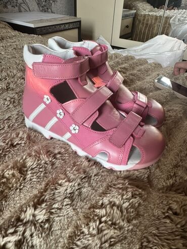 Ayaq quruluşunu dəstəkləyən, rahat və yüngül çəhrayı ortopedik sandallar. Uşağın ayağına uyğun möhkəm fiksasiya təmin edir.