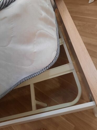 - Tək nəfərlik çarpayı: yumşaq başlıq, metal karkaslı ortopedik əsas; uyğun ölçülü döşək daxildir (şəkildə).
