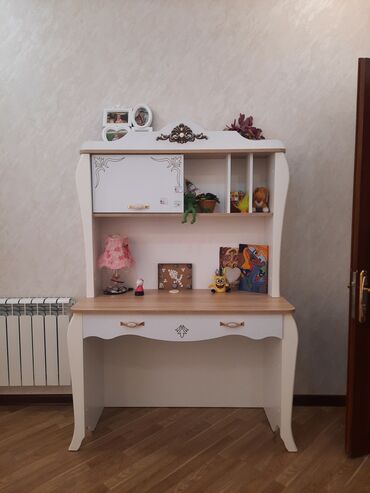 - Yazı masası: üst hissədə rəf və qapalı bölmə, aşağıda geniş iş səthi və ortada çekmece.